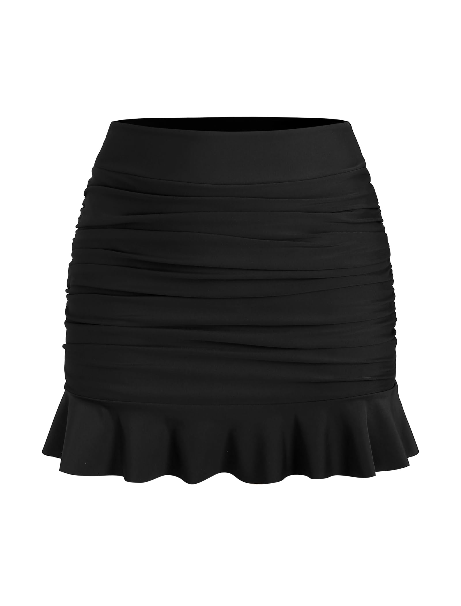 Halcurt Womens High Waisted Ruched Ruffle Swim Skirt